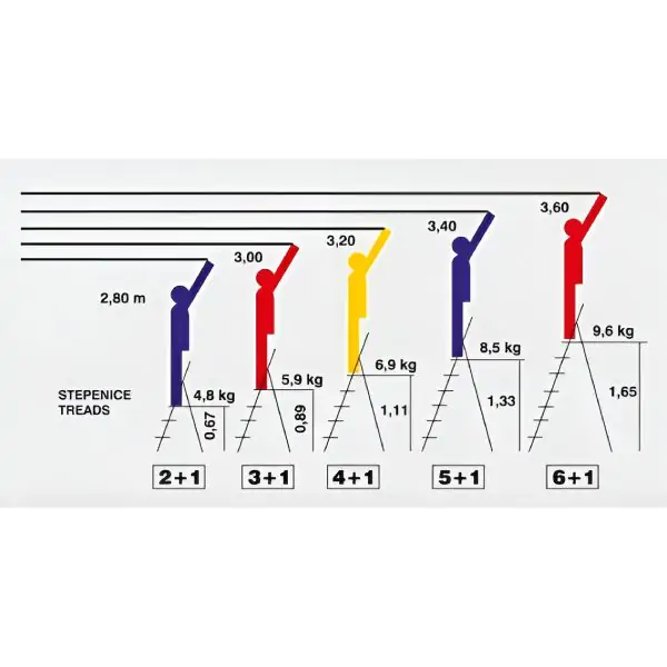 • Pravilno postavljanje merdevina, ravnanje sa površinom, oslonac na ravnu i čvrstu površinu i pažljivo korišćenje su esencijalni elementi za sigurnu upotrebu.